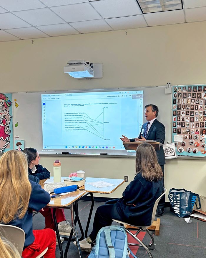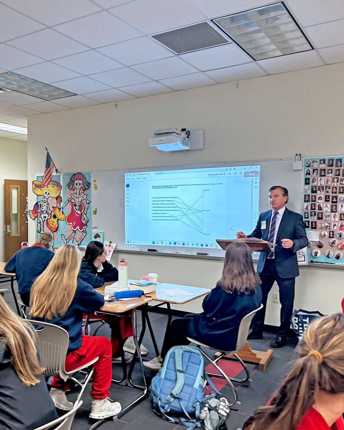 Magistrate Judge Bourgeois addressed the students in Ms. Laura Bordelon's criminology class at St. Joseph's Academy. He discussed his career path and the responsibilities that come with being a judge. While explaining the criminal and civil court systems, he provided real case examples to illustrate his points. Students were then invited to ask questions. SJA expressed gratitude to Judge Bourgeois for sharing his time and expertise.